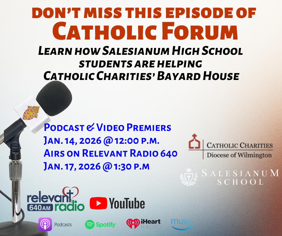 You can hear Catholic Forum in its entirety every Saturday afternoon at 1:30 on Relevant Radio 640 or on Apple, Spotify, iHeartRadio or Amazon Music podcasts. And you can watch videos of all current and past episodes of Catholic Forum on the Catholic Diocese of Wilmington Youtube Channel.