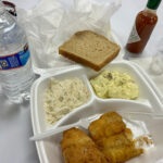 For $10, diners can get a fish sandwich. Kick in an extra $5 and you’ll have a choice of two sides (cole slaw, potato salad, fresh collard greens, mac’n’cheese and fried cabbage) and soft drink. No question this meal is more than your typical lunch.