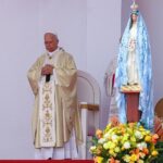 The pope traveled by helicopter from Angola’s capital, Luanda, to the Sanctuary of Mama Muxima, which means “Mother of the Heart” in the local Kimbundu language. Pope Leo made the pilgrimage to the beloved Marian shrine situated on the banks of the Kwanza River after celebrating morning Mass for roughly 100,000 faithful in Kilamba, a district near the Angolan capital city of Luanda.