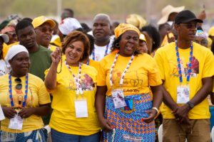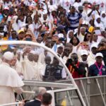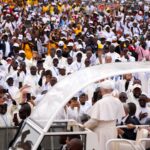 Local authorities estimated approximately 30,000 pilgrims gathered on the Muxima shrine’s esplanade for the recitation of the rosary, with even more gathered in surrounding areas. Many had camped at the site for two or three days in anticipation of the papal visit, enduring 90-degree heat in the hours before his arrival. The crowd greeted the pope with singing and dancing as he moved through the grounds in a golf cart.