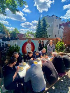 The town has been gathering around the Betlejem community for three decades now. While 15 people live in the house — three Sunday Masses draw about 300 people, including around 30 homeless living outside the community. Afterward, residents serve Sunday lunch to their guests.