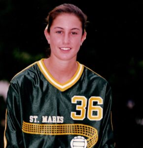 Jenn Mack, a 1999 graduate, was a dominant 5-9 middle hitter and four-year varsity starter for the volleyball team. She helped the Spartans win three state titles during her time at Saint Mark’s, in 1995, 1996 and 1998. Over four seasons, Mack’s teams went 84-4, and from October of her freshman season through her senior year, they won 76 of 77 matches.
