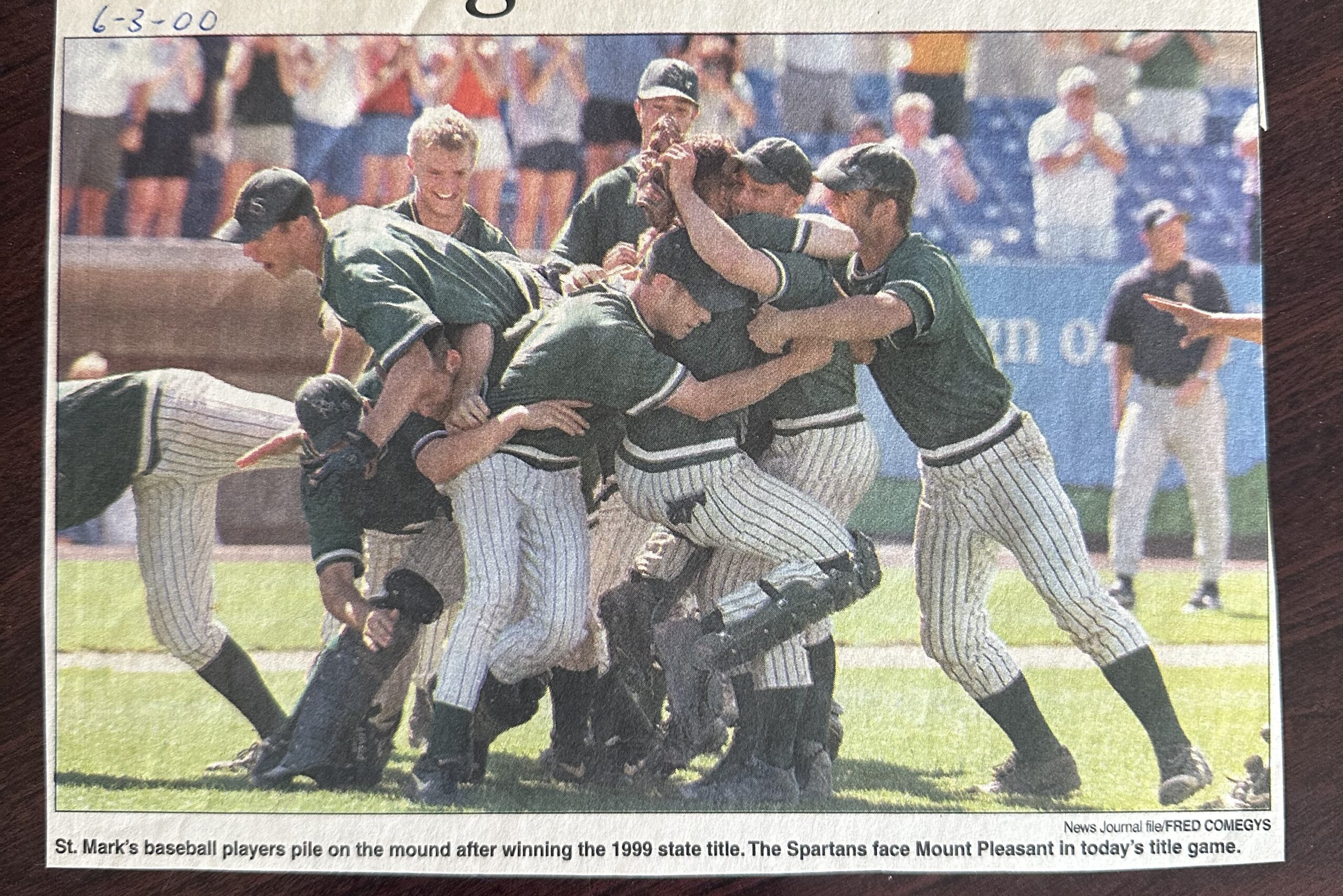Saint Mark’s won its fifth state championship at Frawley Stadium with an 8-2 win over Seaford, clinching an undefeated season at 22-0 and earning the program’s 49th victory in its previous 50 games. In that championship game, Brian Hudock threw a five-hitter and struck out 13. The Spartans were the first undefeated state champs since 1989.