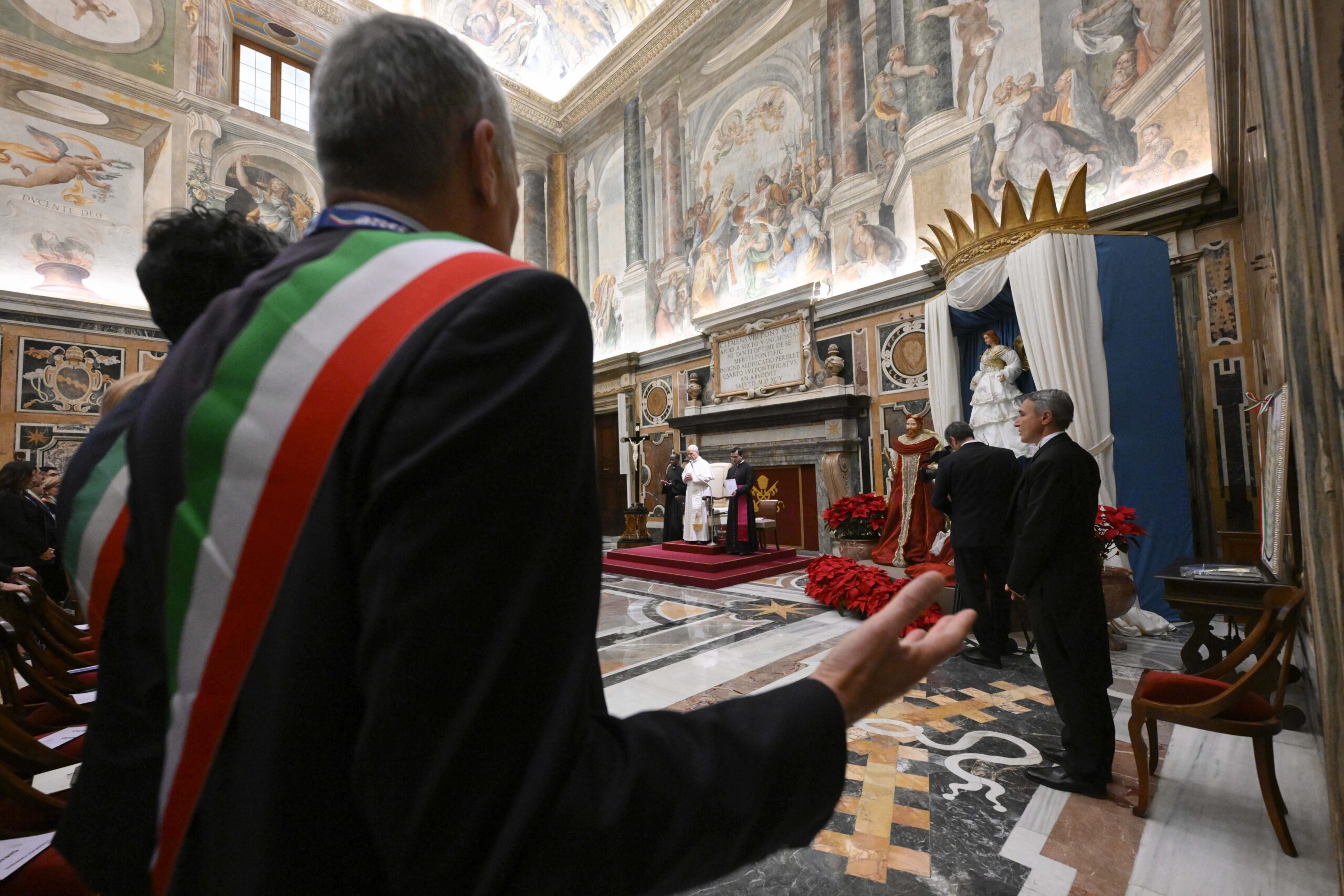 Pope Leo XIV greets members of the National Association of Italian Municipalities during an audience at the Vatican Dec. 29, 2025. (CNS photo/Vatican Media)