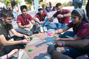 The retreat began with priestly blessings before participants broke into smaller groups. They moved through different stations — friendship bracelet making, creating symbols of hope on stones, and reflecting on a letter from a fictional pilgrim embarking on a journey in the midst of war. Conversations flowed in Hebrew, Arabic and English, creating a sense of unity.