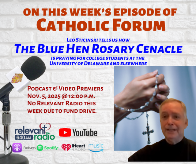 • Podcast debuts Nov. 5, 2025 at noon. Link – catholicforumradio.libsyn.com/pray-the-rosary-for-our-young-people-with-the-blue-hen-rosary-cenacle