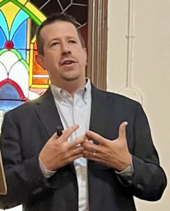 After a blessing from diocesan chancellor Father Joseph McQuaide and remarks from Aquinas board president Jay Fisher, College of St. Joseph vice president of enrollment Michael Gugala spoke.