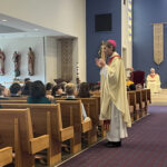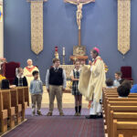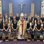 At the end of the celebration, members of the student council presented the bishop with a special gift on behalf of the entire school community, expressing appreciation for his leadership and his visit.