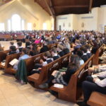 The day began with some social justice. Each school, as they departed their buses, dropped off their food that they had collected for the Holy Cross parish outreach. They then attended Mass with Bishop Koenig, who was joined by Father Jasper and Father James Lentini, the pastor of Holy Cross.