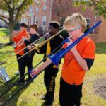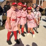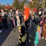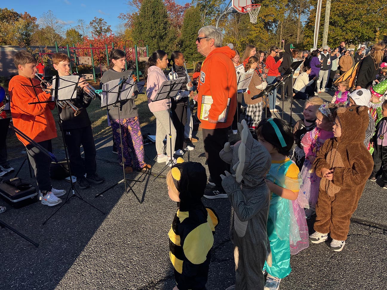 The morning parade is for the early childhood students, and the afternoon event is for the kindergarten through fifth grades. The Middle School Band plays for the costumed students while they parade around the school.