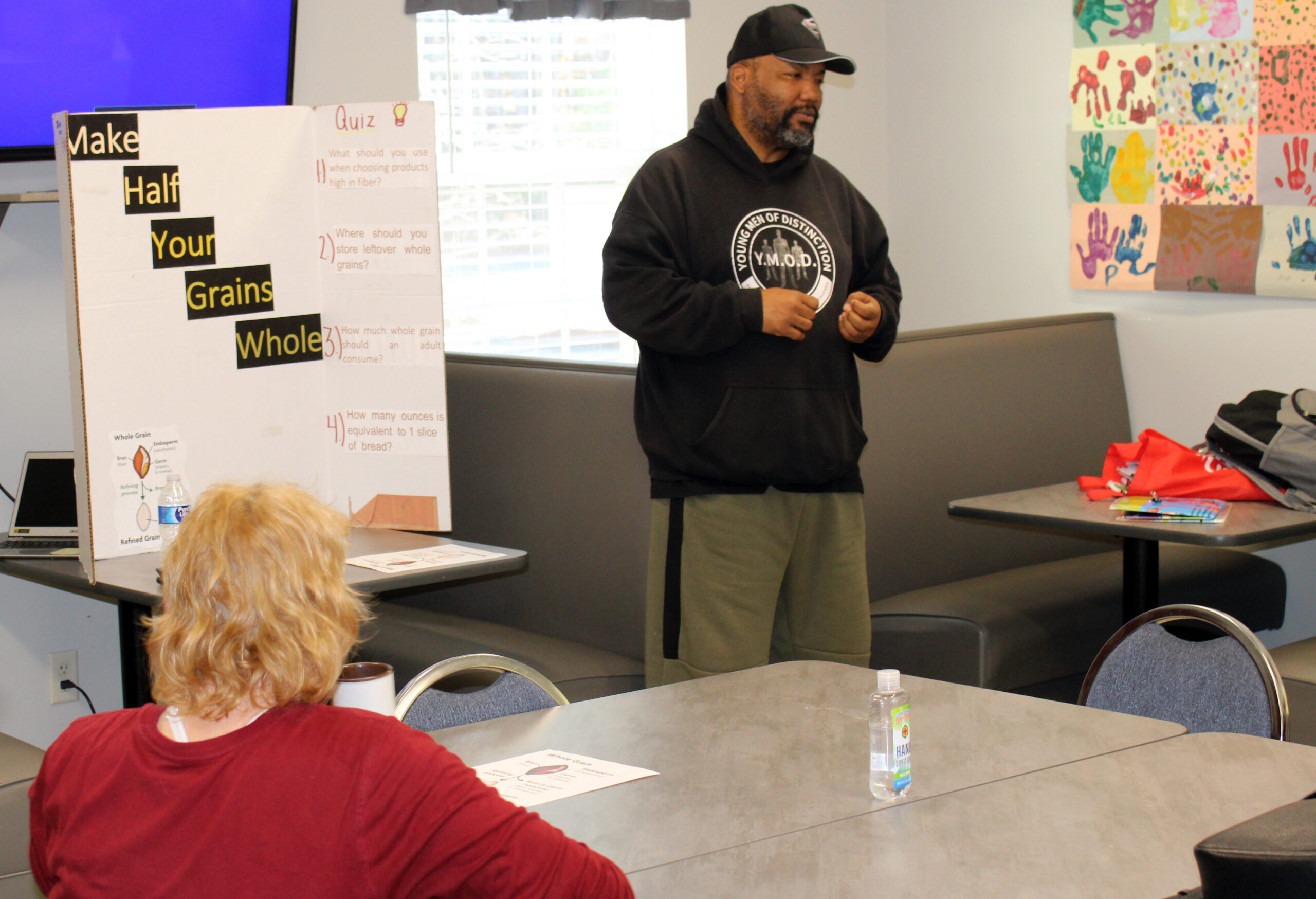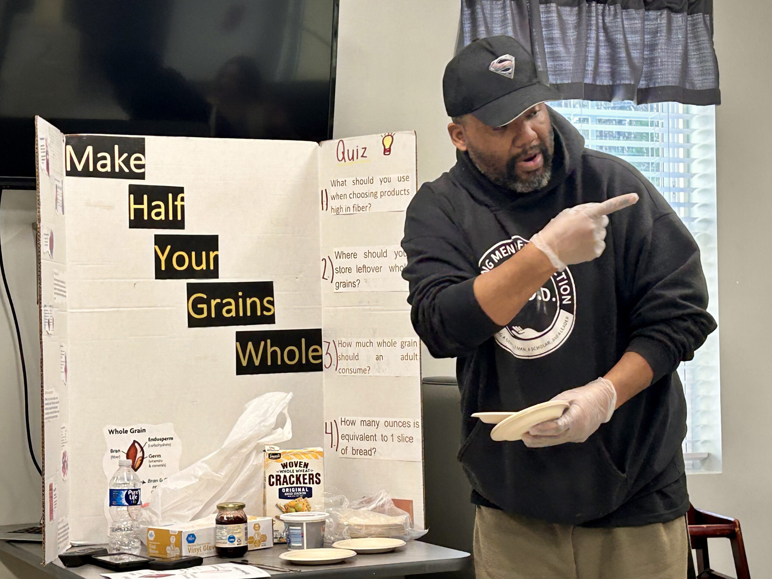 During a recent visit, McCoy Curtis of UMES was also leading an interactive nutrition class for residents. The session offered practical guidance on healthy eating, along with simple snack ideas that were both nutritious and affordable. Residents gathered around as McCoy demonstrated how to make cheesecake bites served on whole-grain crackers, a snack that quickly became a favorite. The class was filled with conversation, laughter, and curiosity as residents asked questions and sampled the treats, turning the lesson into both a learning experience and a moment of community.