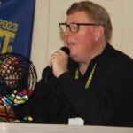 Yes, it was bingo day at St. John the Beloved, with the principal, Richard Hart, up on the stage reading out the numbers and librarian Diane Tobin filling in the big board as they were called out.