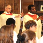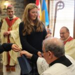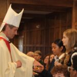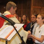 During his homily, Bishop Koenig tied his message to the theme for Catholic schools this year, “By Name You Are Called.” He asked student Abby O’Shea to join him, then had her face the wall. Various people said, “Abby, it’s me,” and she raised her hand when a specific friend said the line. We respond to familiar voices, the bishop said.