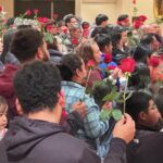 Young people handed out roses to all who entered, in remembrance of the extraordinary signs that emerged with roses in the middle of Winter and Our Lady’s miraculous image on the garb of Juan Diego’s Tilma (cloak).