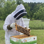 It takes some planning and patience, Clark says, as the first harvest of honey won’t be ready until early 2026. Volunteers will then jar the honey to be gifted for distribution next spring.