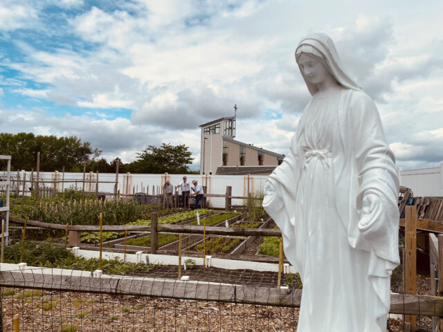 Bees, the latest addition near the garden, will produce honey in the future. This spring, three beehives, producing about 240,000 bees, were added under the management of parishioner Dean Clark, a studied beekeeper.
