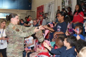NEW CASTLE — The community at St. Peter the Apostle School in New Castle waited anxiously for the guest of honor to arrive on April 29, and when Staff Sgt. Sara McVey entered the gymnasium, the children, their teachers and a few others broke into a round of applause.