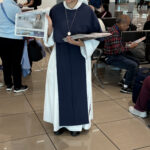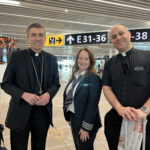 She also brought back the biweekly newspaper, which Dialog editors had arranged to be delivered to Stone while she was home last week so she could bring back copies of last week’s edition with her photograph on the cover. Pilgrims were seen reading their local newspaper at the Leonardo da Vinci International Airport in Rome.