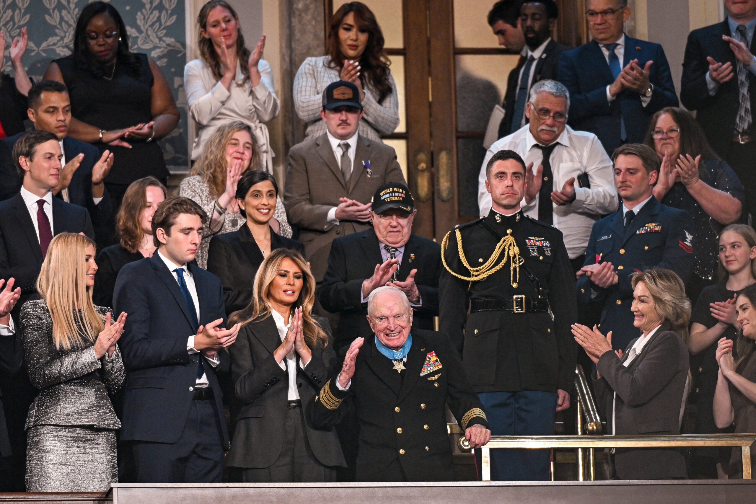 But in one moment of bipartisanship, Trump awarded E. Royce Williams, a 100-year-old retired Navy captain, the Congressional Medal of Honor for his actions in a mission during the Korean War, to widespread applause in the chamber.