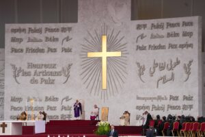 “Lebanon, stand up,” he said. “Be a home of justice and fraternity! Be a prophetic sign of peace for the whole of the Levant,” a term referring to the area that borders the Eastern Mediterranean and traditionally includes Turkey, Lebanon, Syria, Israel, Palestine and Jordan.