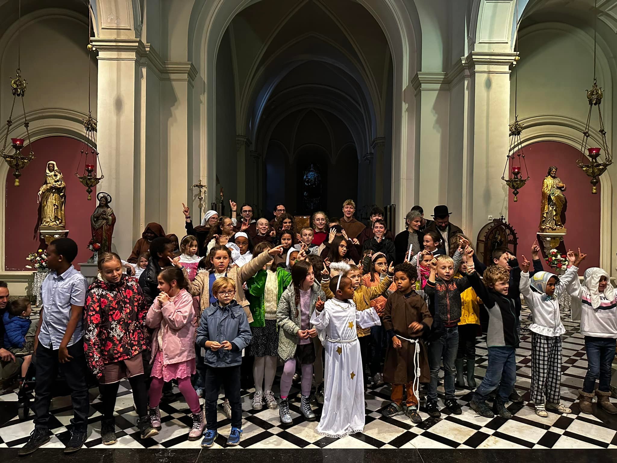 Kids dressed as Catholic saints celebrate a Holywins festival in the Sanctuary of St. Juliana of Cornillon, better known as Juliana of Liege, in Belgium, Oct. 29, 2023. Across Europe, Catholic families are turning Halloween into a celebration of light, life and holiness with "Holywins" -- a play on "Holy" and "Halloween." The movement began in Paris in 2002 and has since spread to Poland, Belgium, Italy, Spain and beyond. (OSV News photo/courtesy Holywins Liege)