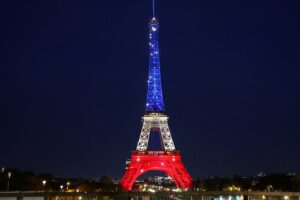 The Eiffel Tower will be lit Nov. 13 in the colors of the French flag after nightfall, The Associated Press reported.