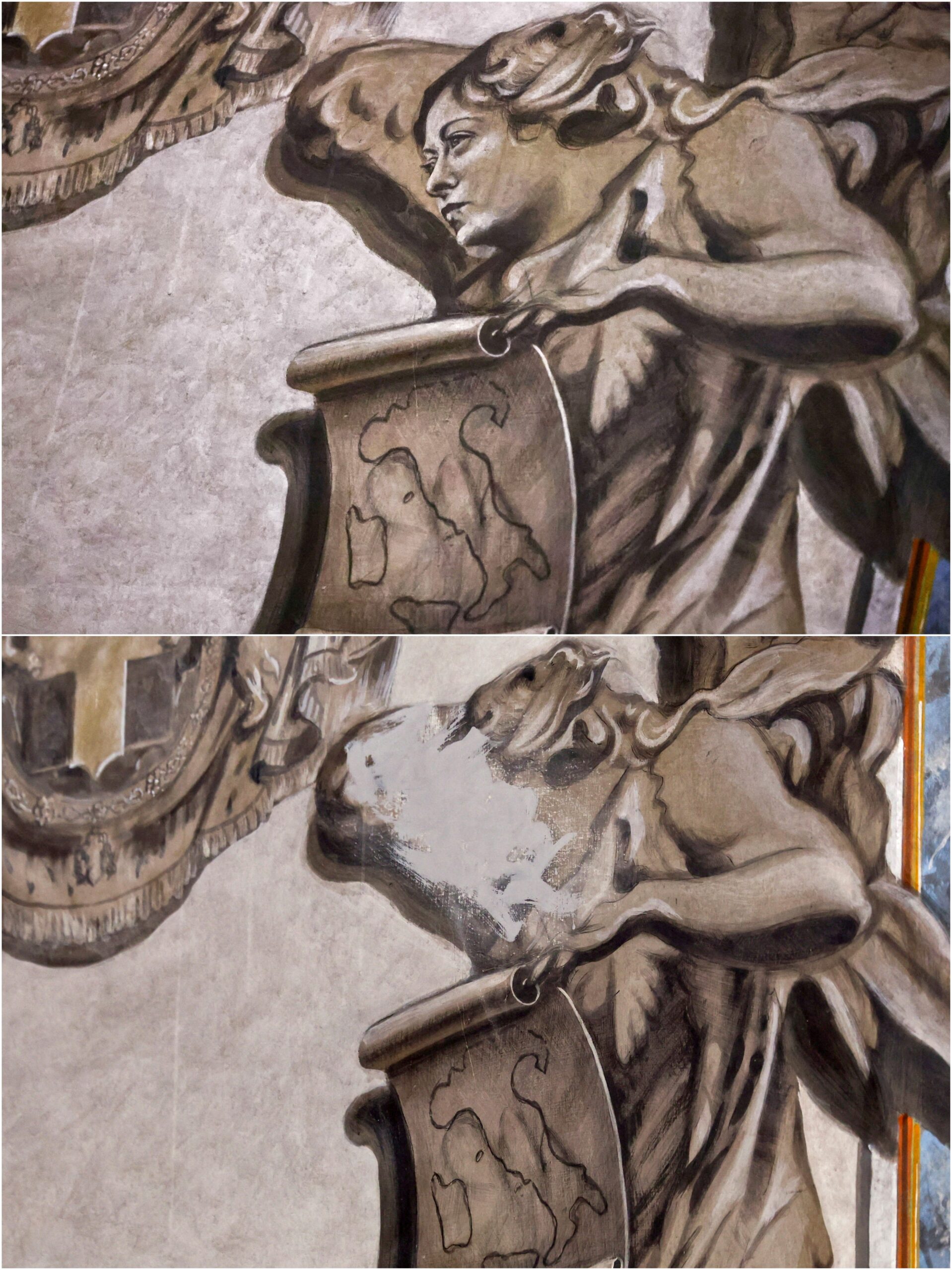 La Repubblica reported that Feb. 4 was busy with phone calls and meetings between the owner of the building, the Fund for Buildings of Worship, the Office for Buildings of Worship of the Vicariate of Rome and Msgr. Daniele Micheletti, parish priest of San Lorenzo, that led to the removal of the prime minister’s face from the painting.