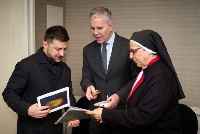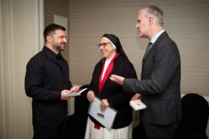 During his official visit to Madrid Nov. 18, Zelenskyy met with Sister Lucía, director of the Santa Clara Convent Foundation, along with Juan Carlos Cruz, a member of the Pontifical Commission for the Protection of Minors and a supporter of Sister Lucía’s humanitarian work.