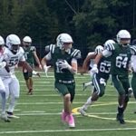 A bad snap on a punt set the Auks up for their first score. Starting at the Green Knights’ 30, Michael Donovan (St. Mary Magdalen Parish) ran for 23 yards on the Auks’ first play, then to the 2. Noah Blessington (St. Mary Magdalen Parish) did the rest, plunging in for a touchdown with 7:30 to go in the first quarter.