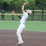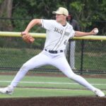 Thompson allowed his fifth hit – all singles – in the sixth, and he walked a batter with two outs in the seventh, but a fly ball to Bujnowski in left ended the game. The Sals’ outfielders were busy all day, recording 10 putouts in the game. Sals infielders also caught two popups and a line drive.