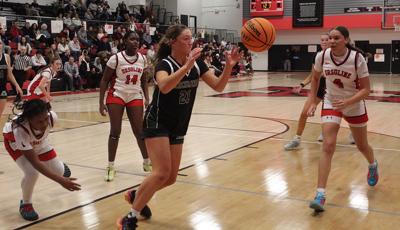 Ellie DeLuca makes a pass for the Auks at Ursuline.
