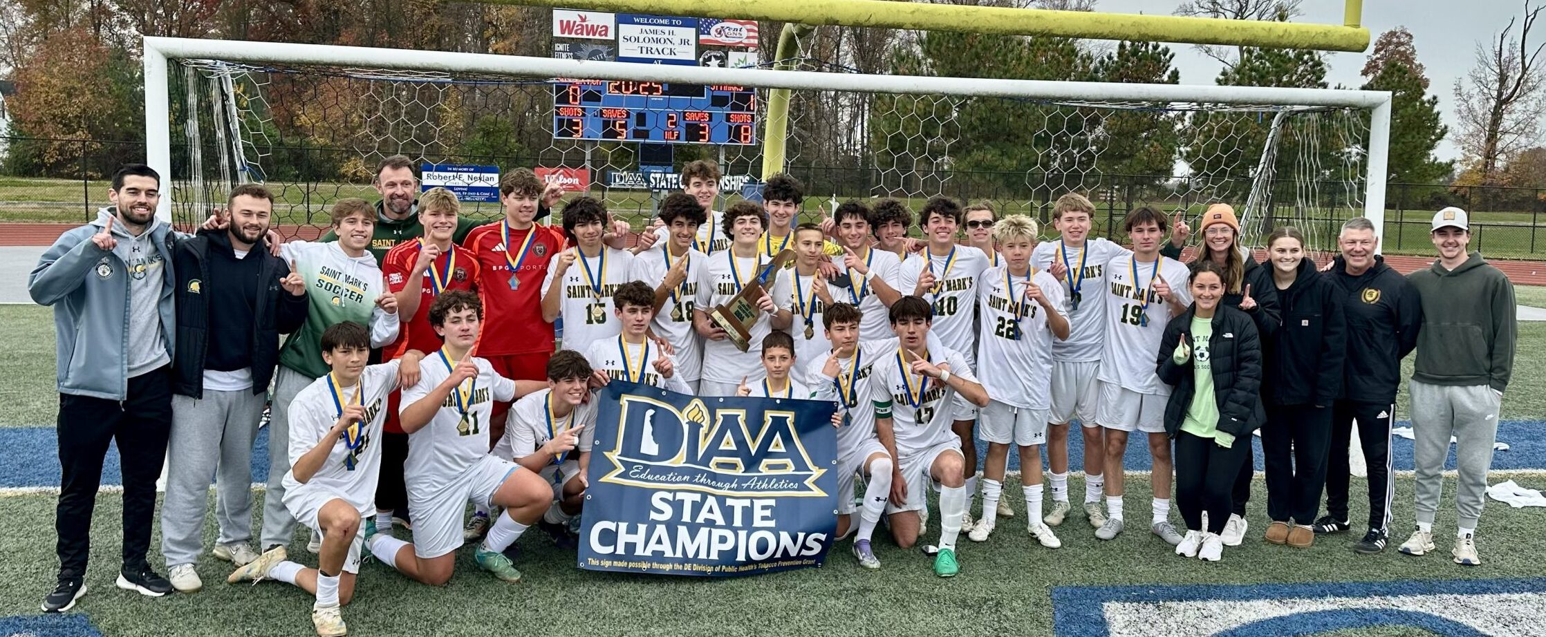 Scott McDermott lined up around 30 yards from Sussex Academy goalkeeper Benjamin Figueroa-Morales, close to the Saint Mark’s bench. His kick was not struck very hard, but this shot was more about placement. The ball disappeared among a group of players from both teams and bounced softly into the right side of the net. That turned out to be the only goal of the afternoon at Dover High School, and the Spartans celebrated their first soccer state championship since 2001 and 12th overall. It also was the 39th anniversary of Saint Mark’s first-ever soccer state championship win.