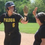 BRANDYWINE HUNDRED – Padua faced a four-run deficit midway through its softball game on April 18 against Sussex Tech, but the Pandas clawed back and claimed the victory in walkoff style on a single by Shay Chesworth that scored her older sister, Leigh. The 7-6 win at Brandywood Softball snapped a two-game losing streak.