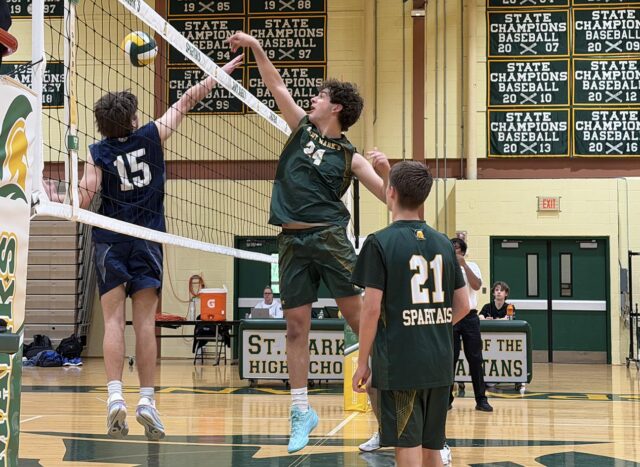 Saint Mark’s took a 17-16 lead in the first set on a backhanded tap by Logan Kusters, but Sussex Academy tied it with an attack off the tape by Desmond Davis and took the lead on a hitting error. The Spartans had it tied at 19, but the Seahawks scored the final six points for the win.