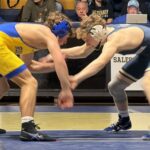 The visiting Riders won the first two classes, 106 and 117, but Salesianum held an 18-14 lead after a decision by Carter Davis at 144. Caesar Rodney got a pin from Miguel Sagaran at 150, however, and went back into the lead, but the Sals got three falls and a technical fall in the next four bouts to take control.
