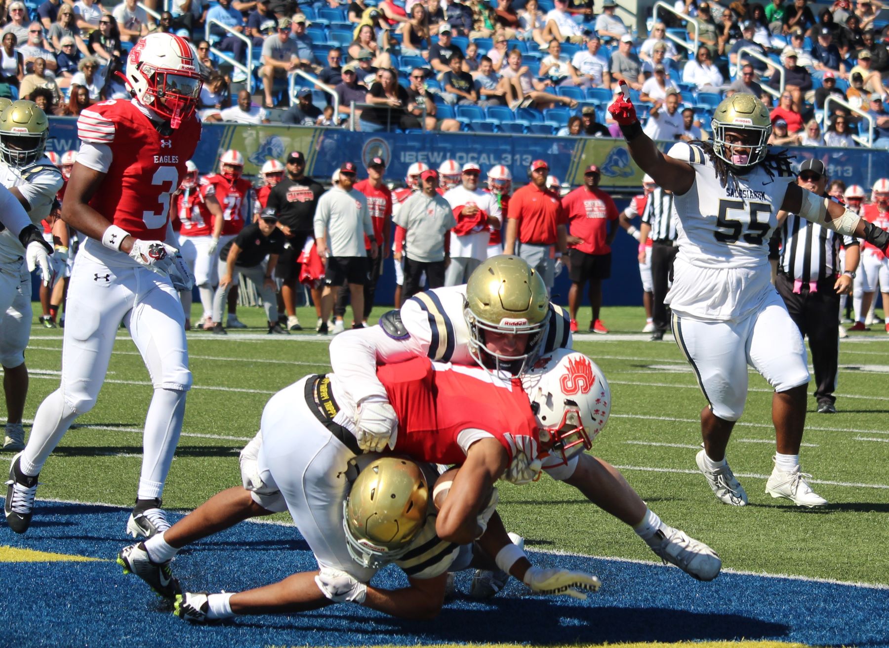 NEWARK — Salesianum and Smyrna traded Friday Night Lights for Saturday Afternoon Sunshine, but the teams’ football matchup on Oct. 4 definitely had a big-time feel. On the turf at Delaware Stadium under sunny skies, the Sals opened up a 16-0 lead before holding off the Eagles for a 37-26 win.