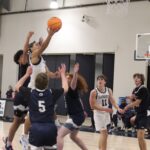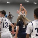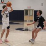 The first half was marked by a blistering pace, with the Sabres putting up 47 points. They pressured Key into several turnovers, and they blocked a few shots and controlled the rebounding, leading to a number of fast-break points. Six SS. Peter and Paul players scored in the quarter, led by senior JJ Rardin, who had 11.