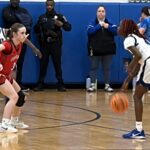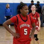 A back-and-forth first half included stretches without a bucket as both teams struggled from the field. Ursuline got on the board first after a steal by Amoree Anderson, who sent a long pass to Naiya Murphy, but that was nearly two and a half minutes in. The Raiders controlled the rebounding throughout the first half, but they could not generate a lead of more than a few points.
