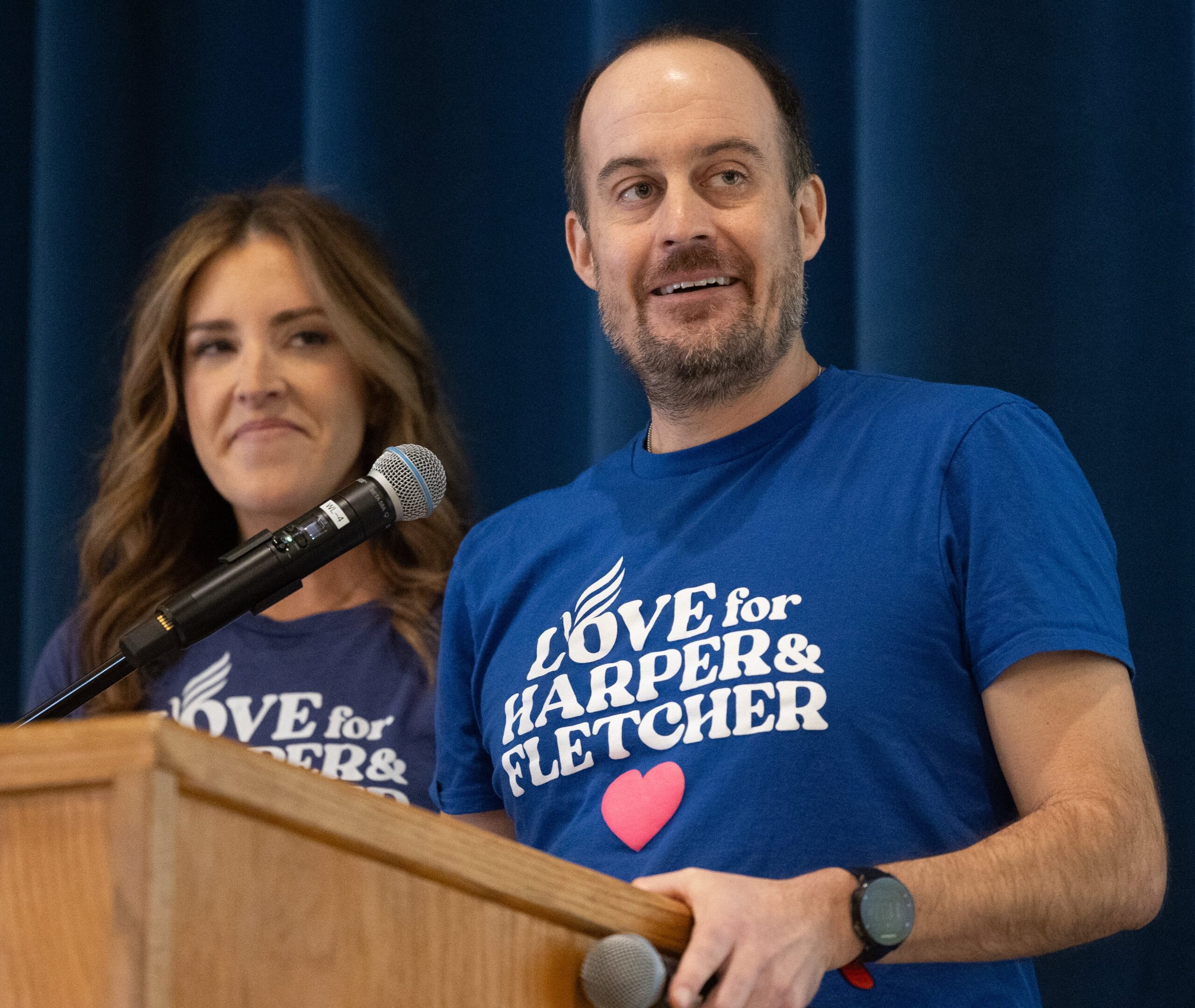 Many in the crowd wore T-shirts bearing Fletcher’s and Harper’s names along with the words “Joy” and “Hope.”