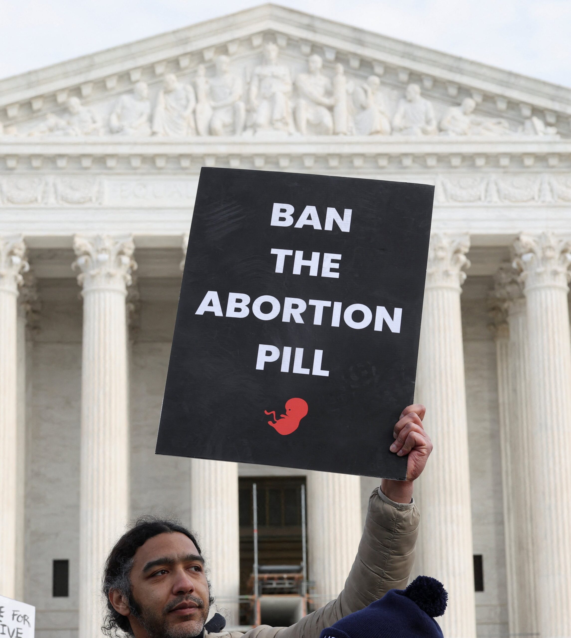 A pro-life advocates hold a sign outside the U.S. Supreme Court during the 53rd annual March for Life in Washington Jan. 23, 2026. (OSV News photo/Kylie Cooper, Reuters)