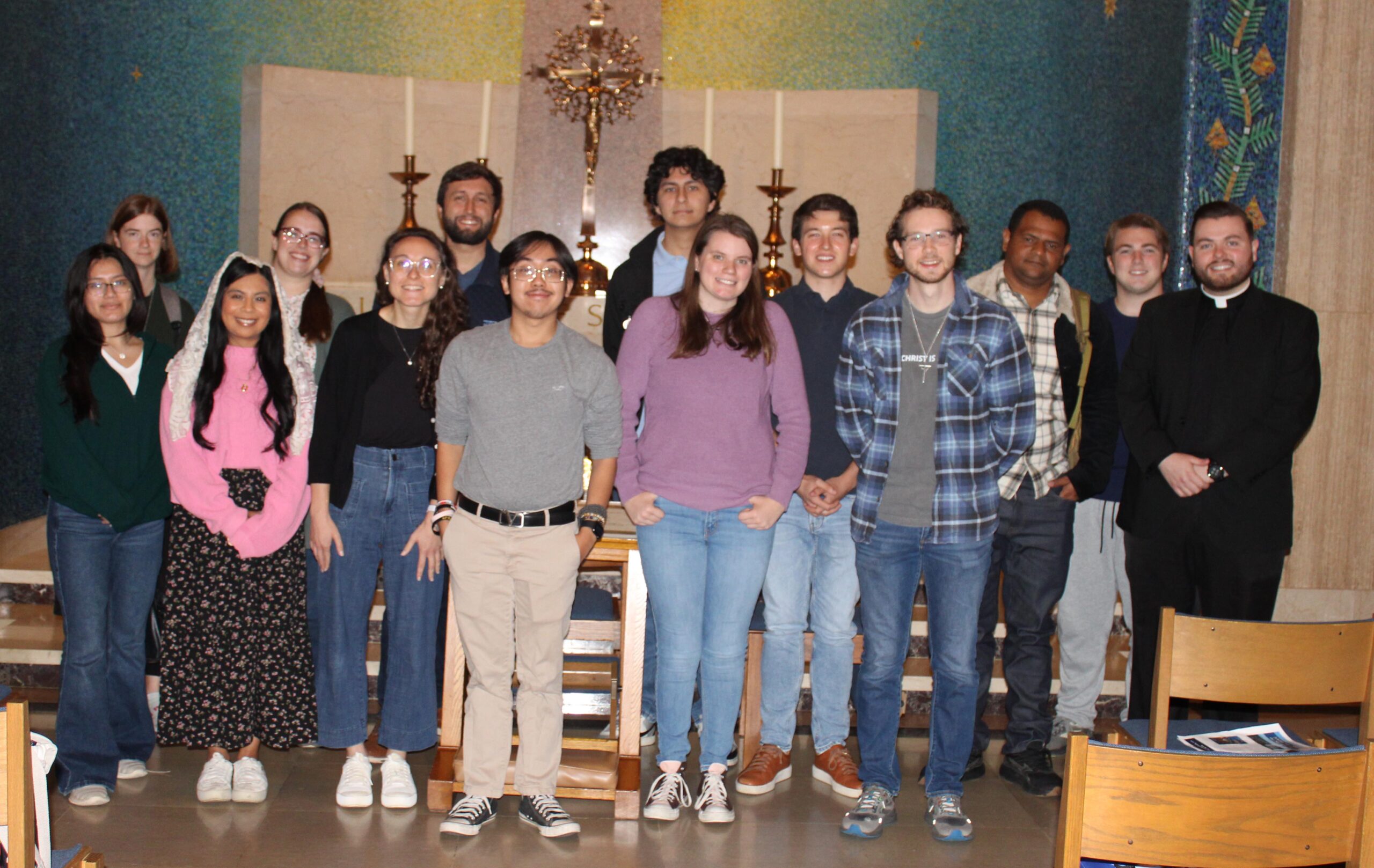 From left, Father Brian Lewis, seminarian Jakob Brown and Leann Brown, Jakob’s mom. Diocese of Wilmington Marian Pilgrimage to the Basilica of the National Shrine of the Immaculate Conception in Washington. Dialog photo/Joseph P. Owens
