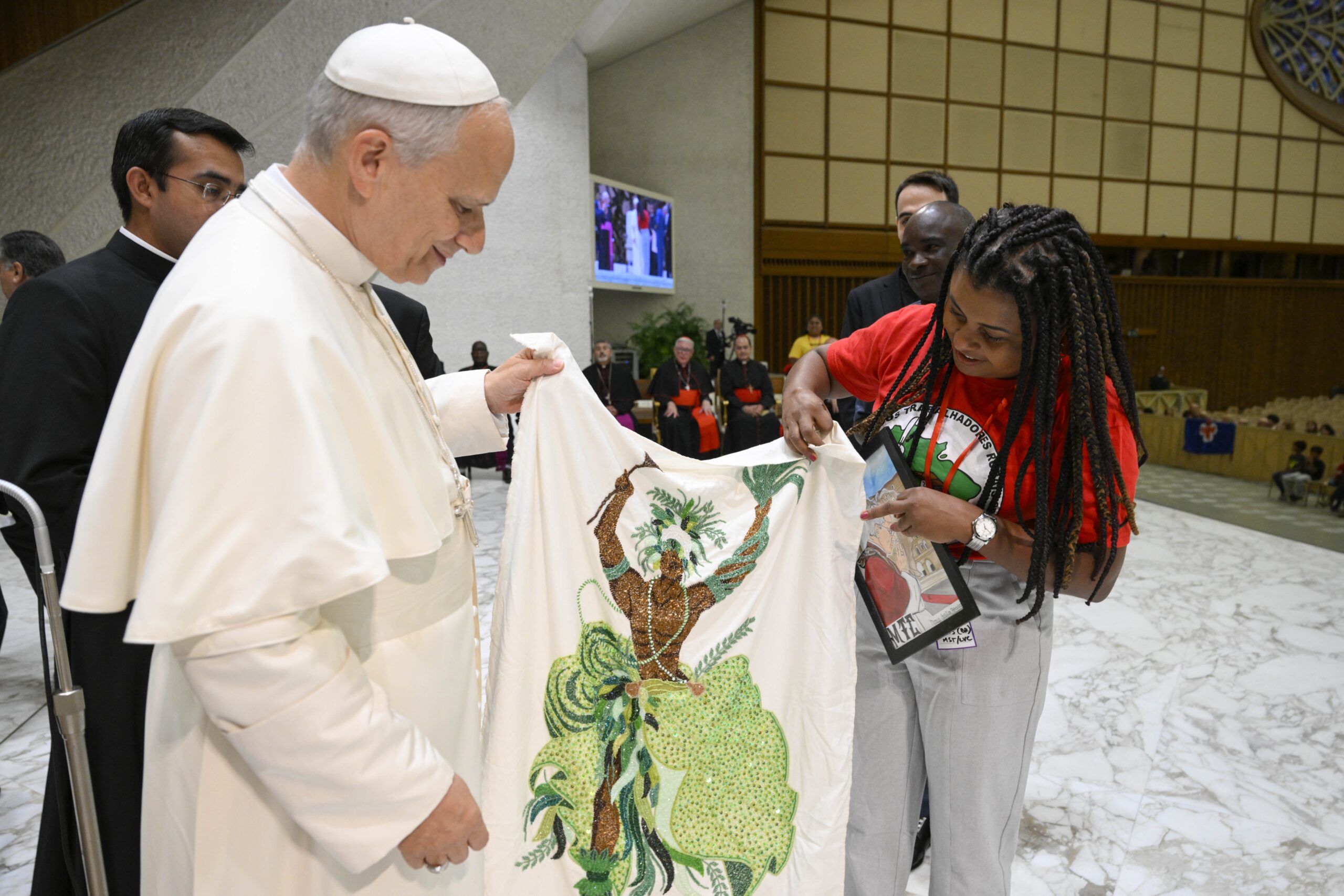 Pope Leo greeted the participants and assured them that, like his predecessor Pope Francis, he believed “housing, work and land are sacred rights, it is worthwhile to fight for them, and I would like you to hear me say ‘I am here,’ ‘I am with you!'”