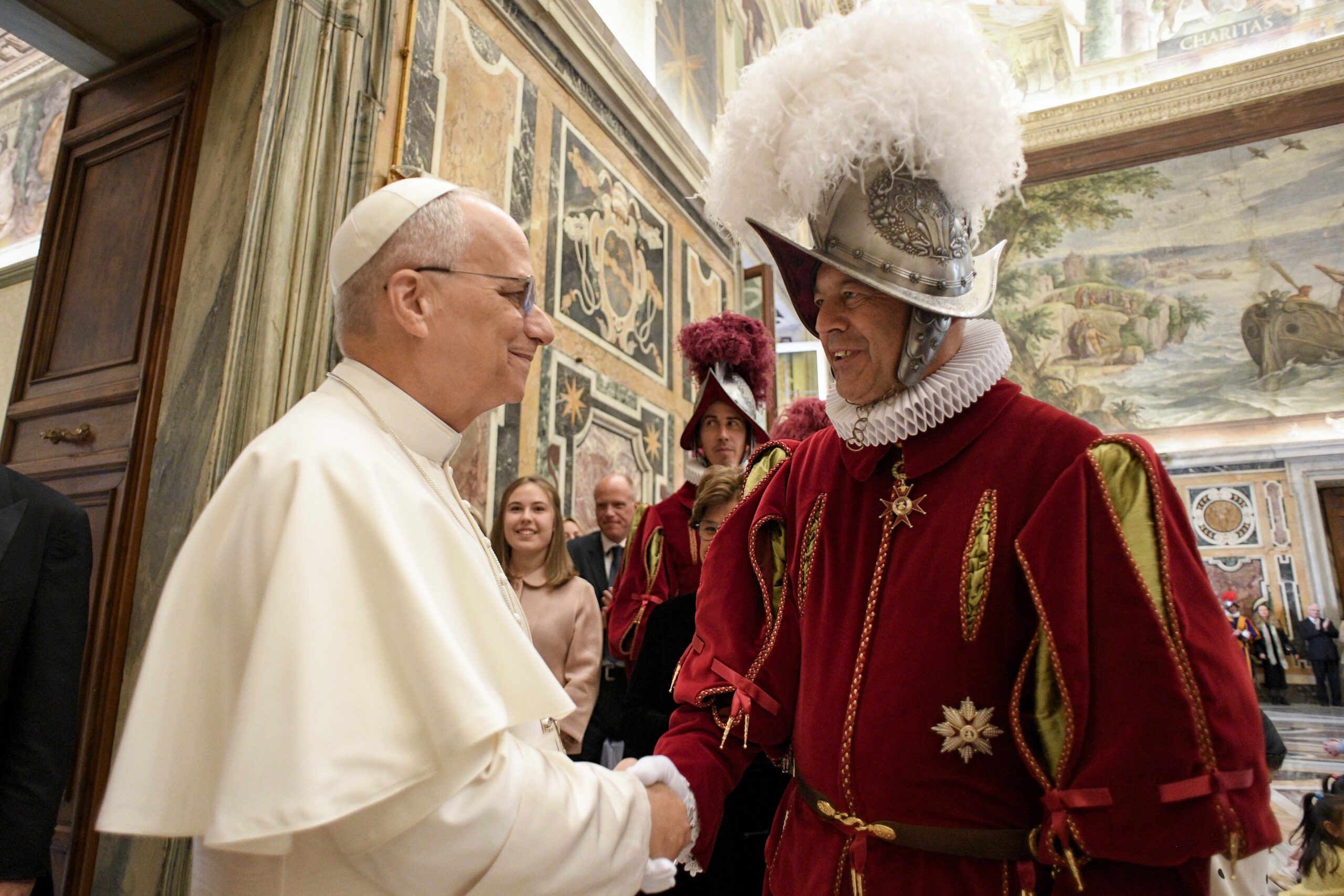 Welcoming new recruits from different regions of Switzerland to the Pontifical Swiss Guard, the pope said they are called “to form a united body, to create strong and healthy bonds of friendship.”